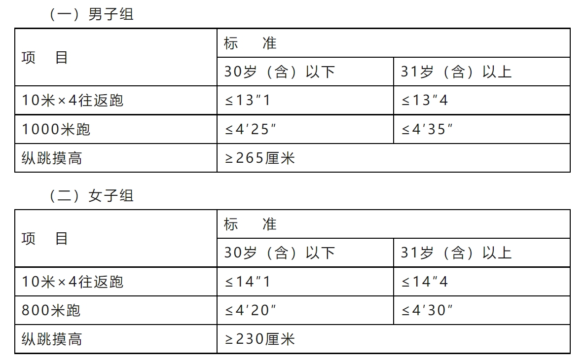 (三)測評標(biāo)準中涉及的年齡計算時間截止到體能測評當(dāng)月。