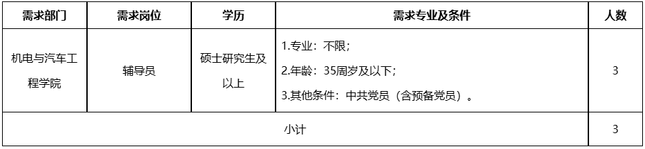 3.其他條件:要求本科為以下專業(yè)之一:交通運(yùn)輸、車輛工程,新能源汽車工程技術(shù)、智能網(wǎng)聯(lián)汽車工程技術(shù)、汽車電子技術(shù)與檢測診斷專業(yè);具有副高職稱的,年齡放寬至40周歲及以下。