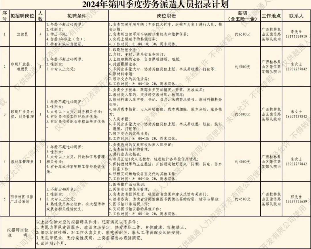 (五)公示錄用擬聘人員名單將在融通人力公司公眾號進(jìn)行公示,公示期為5個工作日。公示無異議或者反映問題不影響聘用的擬聘人員,與融通人力資源開發(fā)有限公司簽訂勞務(wù)派遣勞動合同,辦理入職相關(guān)手續(xù)。