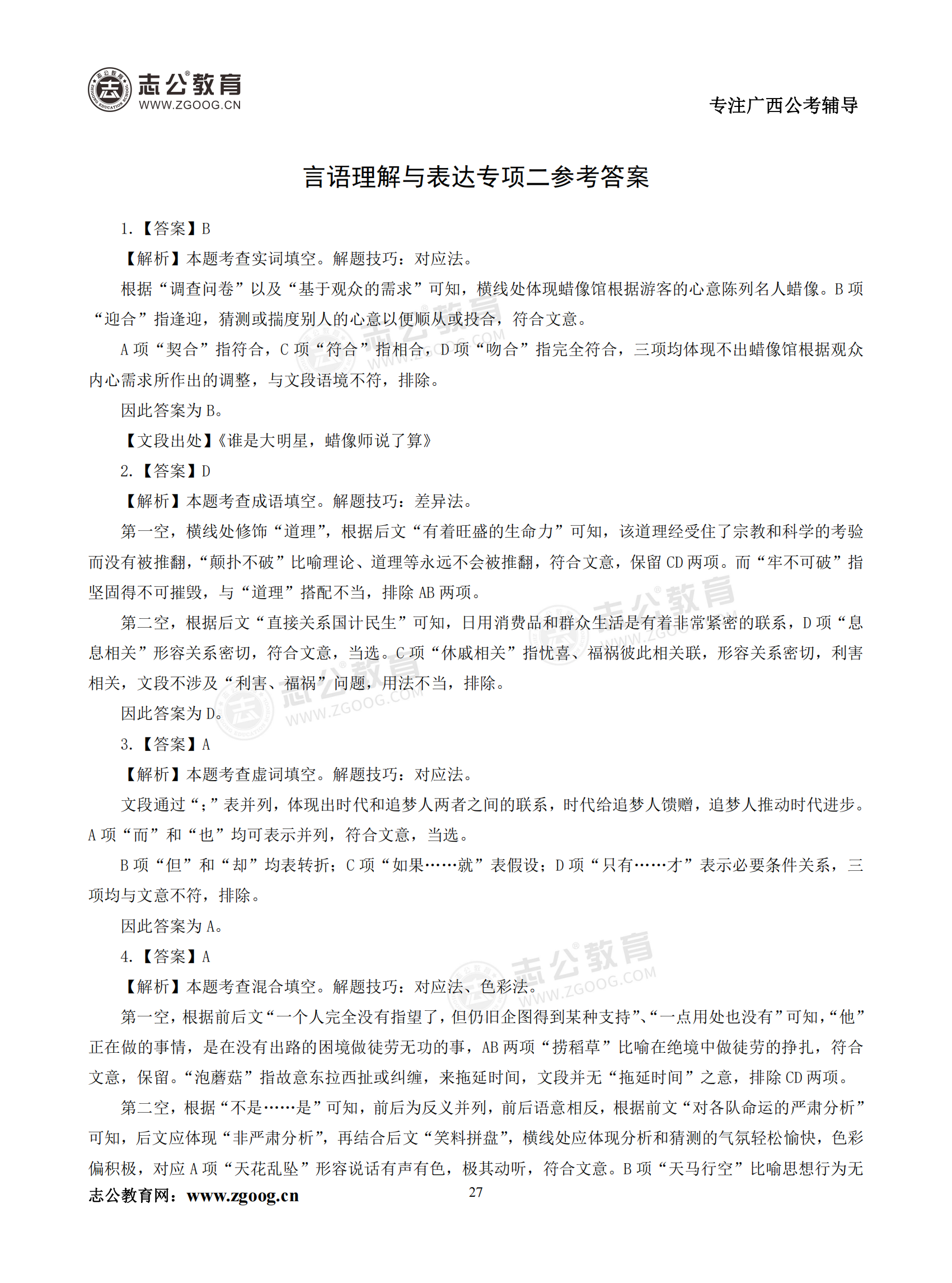 【公考模塊練習(xí)】言語(yǔ)理解題二(答案)