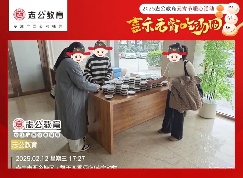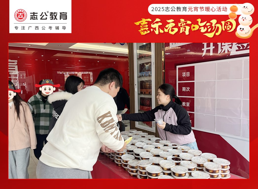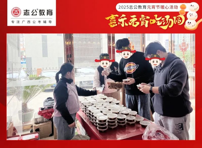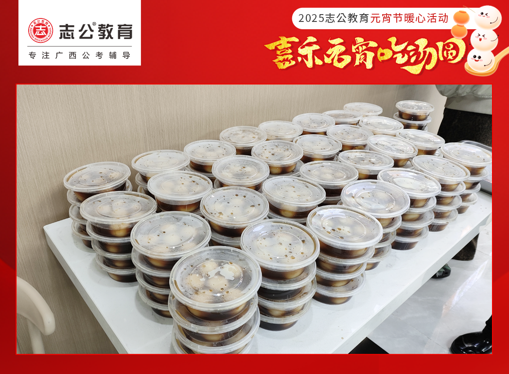元宵節(jié),作為中國(guó)的傳統(tǒng)節(jié)日之一,承載著團(tuán)圓、歡樂與美好的祈愿。在這個(gè)溫馨的佳節(jié),志公教育也為正在備考的學(xué)員以及公司員工都送上了一份甜蜜驚喜 —— 暖心湯圓,讓每一位小伙伴/學(xué)員都能在忙碌的學(xué)業(yè)/工作之余,感受到濃濃的節(jié)日氛圍與志公教育關(guān)懷。