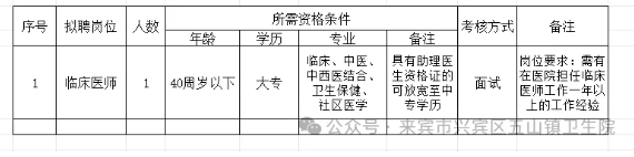 2.報名地點:來賓市興賓區(qū)五山鎮(zhèn)衛(wèi)生院辦公室。