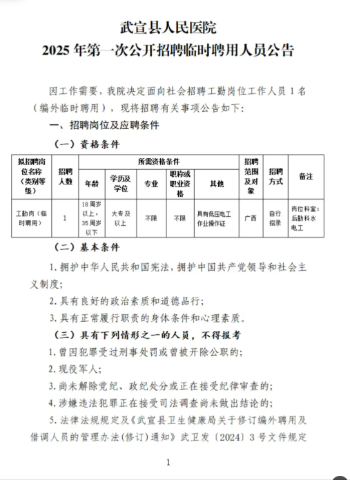 2025年廣西來(lái)賓市武宣縣人民醫(yī)院第一次公開(kāi)招聘臨時(shí)聘用人員1人