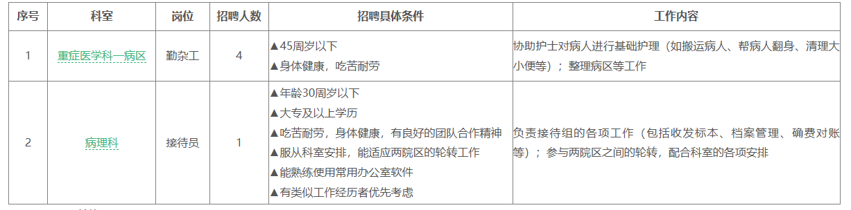 因醫(yī)院工作需要,現(xiàn)面向社會公開招聘5名普通合同工?,F(xiàn)就有關事項公告如下: