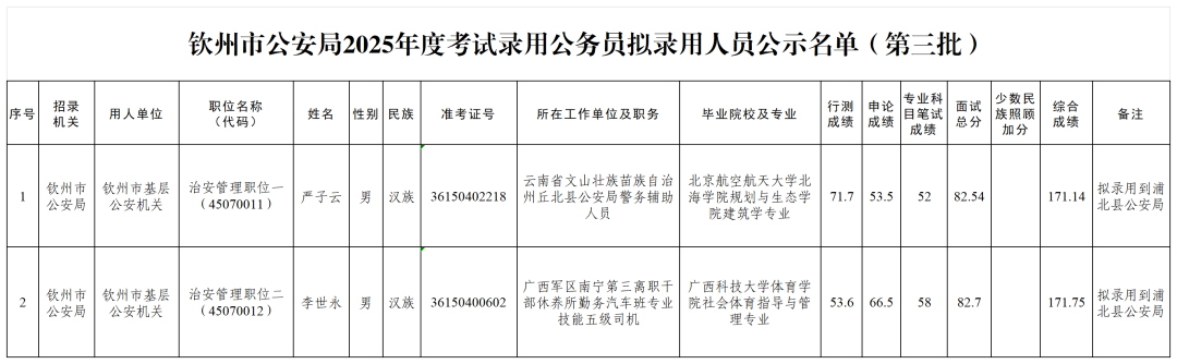 16 欽州市2025年度考試錄用公務員擬錄用人員公示(八)