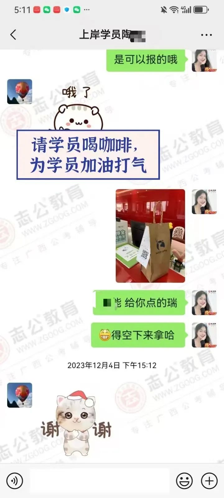 為他安排一杯暖心的咖啡,他在第二天也回請了我“帶有西大文化底蘊(yùn)的瑞幸”。期間,還主動給我轉(zhuǎn)介紹了 3 個(gè)同學(xué)來報(bào)班!在這條逐夢的道路上,我們不僅僅是師生,更是相互信任、相互支持的知心朋友。