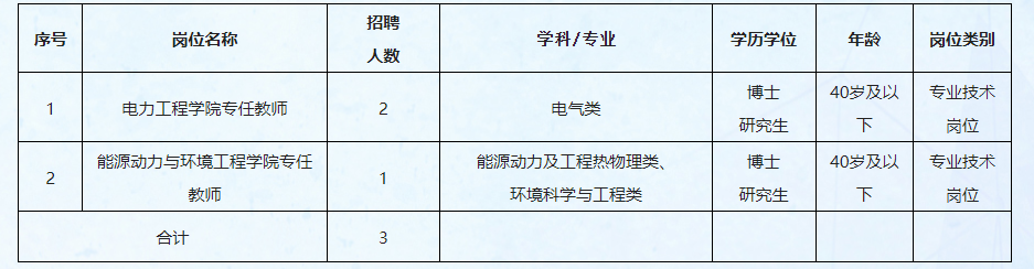 招聘政策和未盡事宜,可咨詢學校人事處及相關(guān)二級學院。人事處聯(lián)系人及電話:丘老師,0771-2212985;電力工程學院聯(lián)系人及電話:趙老師,0771-2212395;能源動力與環(huán)境工程學院聯(lián)系人及電話:麻老師,0771-2212705。聯(lián)系方式僅供與博士人才聯(lián)絡(luò)使用,宣傳推銷及其他廣告勿擾。