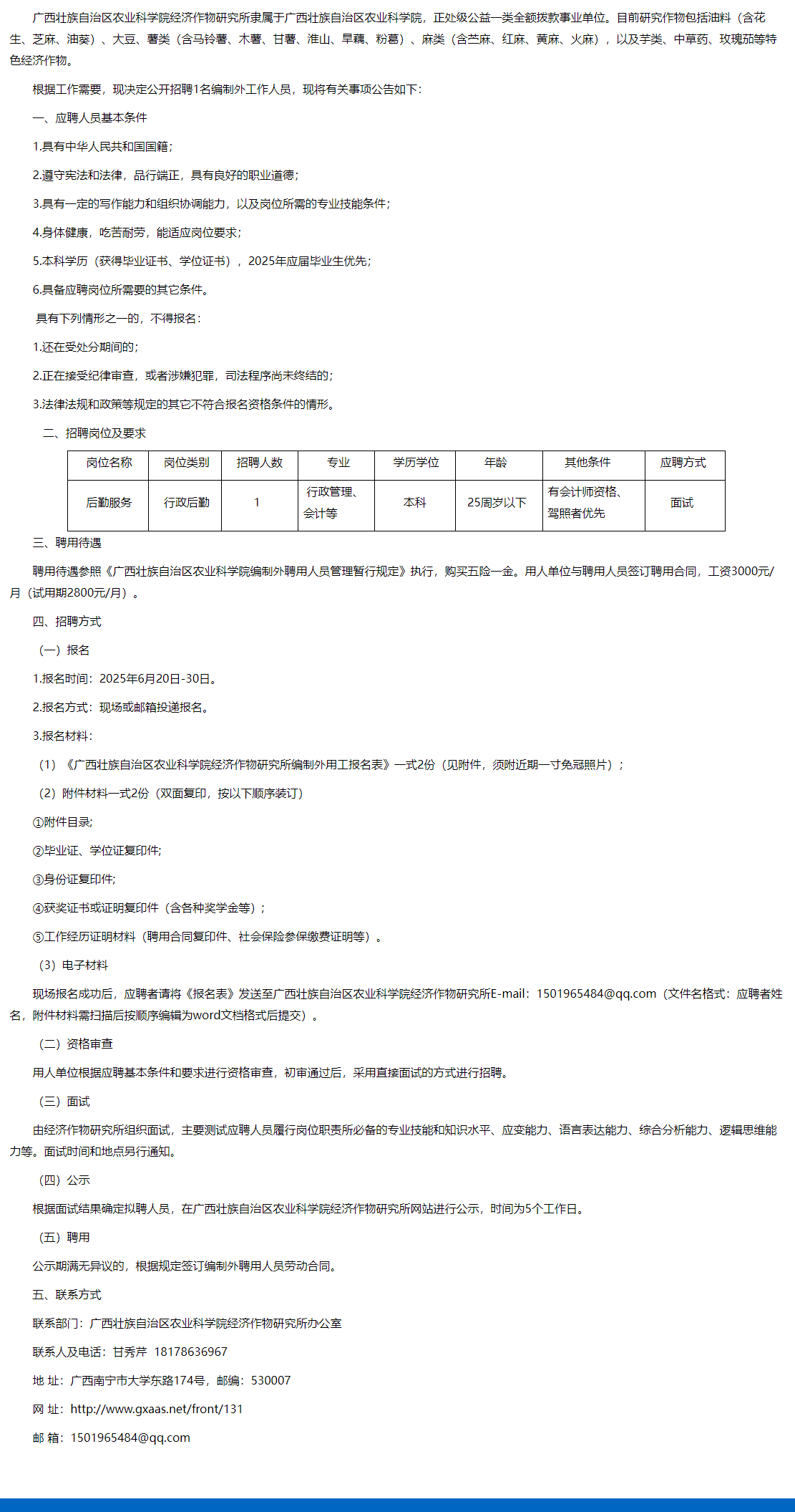 2025年廣西壯族自治區(qū)農(nóng)業(yè)科學院經(jīng)濟作物研究所招聘編制外工作人員1人