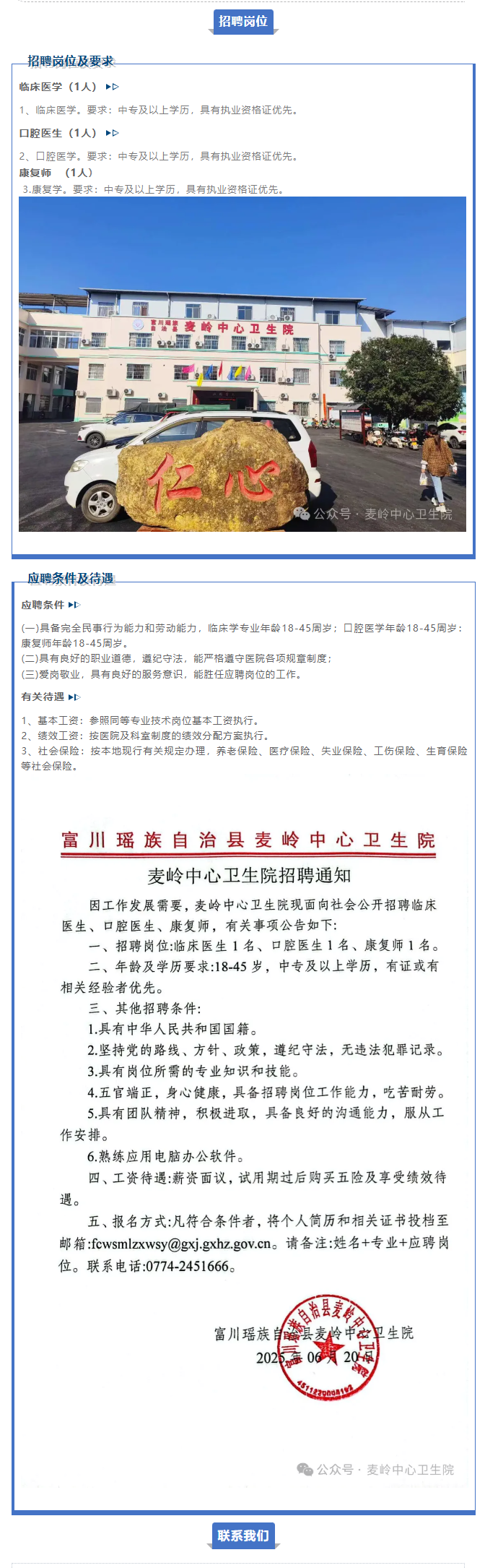 原文標題:好消息!麥嶺中心衛(wèi)生院招聘啦!