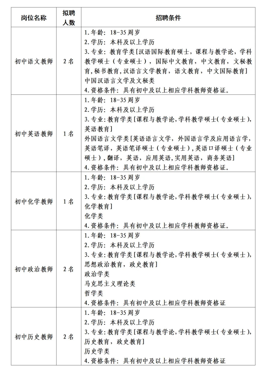 (六)18周歲以上、35周歲以下。有教學(xué)經(jīng)驗(yàn)豐富、碩士研究生或中級(jí)職稱(chēng)以上的應(yīng)聘人員,年齡可適當(dāng)放寬到45周歲。