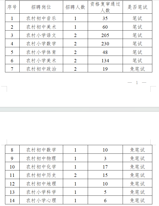 根據(jù)《桂林市雁山區(qū)2025年特崗教師招聘公告》要求“筆試按實(shí)際通過(guò)資格復(fù)審人數(shù)開考;招聘崗位資格復(fù)審?fù)ㄟ^(guò)人數(shù)不足20人免筆試,資格復(fù)審?fù)ㄟ^(guò)人數(shù)20人以上(含20人,研究生及以上學(xué)歷不包含在內(nèi),研究生及以上學(xué)歷免筆試),需進(jìn)行筆試。”經(jīng)現(xiàn)場(chǎng)資格復(fù)審,桂林市雁山區(qū)2025年特崗教師招聘筆試、免筆試學(xué)科崗位情況如下: