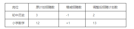 按照《2025年玉林市玉州區(qū)特崗教師招聘公告》中“招聘崗位計(jì)劃招聘人數(shù)與通過資格復(fù)審?fù)ㄟ^人數(shù)的比例達(dá)到1:3的方可開考。達(dá)不到開考比例的,減少該崗位的招聘數(shù),空出的崗位計(jì)劃數(shù)可調(diào)劑到生源充足的其他學(xué)科崗位使用。調(diào)劑方案經(jīng)玉州區(qū)特崗教師招聘領(lǐng)導(dǎo)小組審定。”的規(guī)定,由于初中歷史崗位計(jì)劃招聘3人,資格復(fù)審?fù)ㄟ^實(shí)際人數(shù)為7人,未達(dá)到開考比例。經(jīng)玉州區(qū)特崗教師招聘領(lǐng)導(dǎo)小組同意,初中歷史崗位招聘人數(shù)減少1人,減少的崗位調(diào)整到生源較充足的小學(xué)數(shù)學(xué)崗位使用,具體調(diào)整如下: