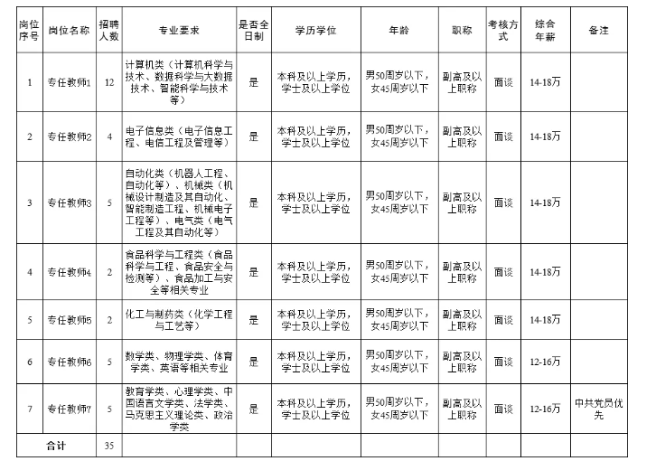 本次公開(kāi)招聘副高及以上職稱專任教師共計(jì)35名,具體招聘崗位及條件如下:
