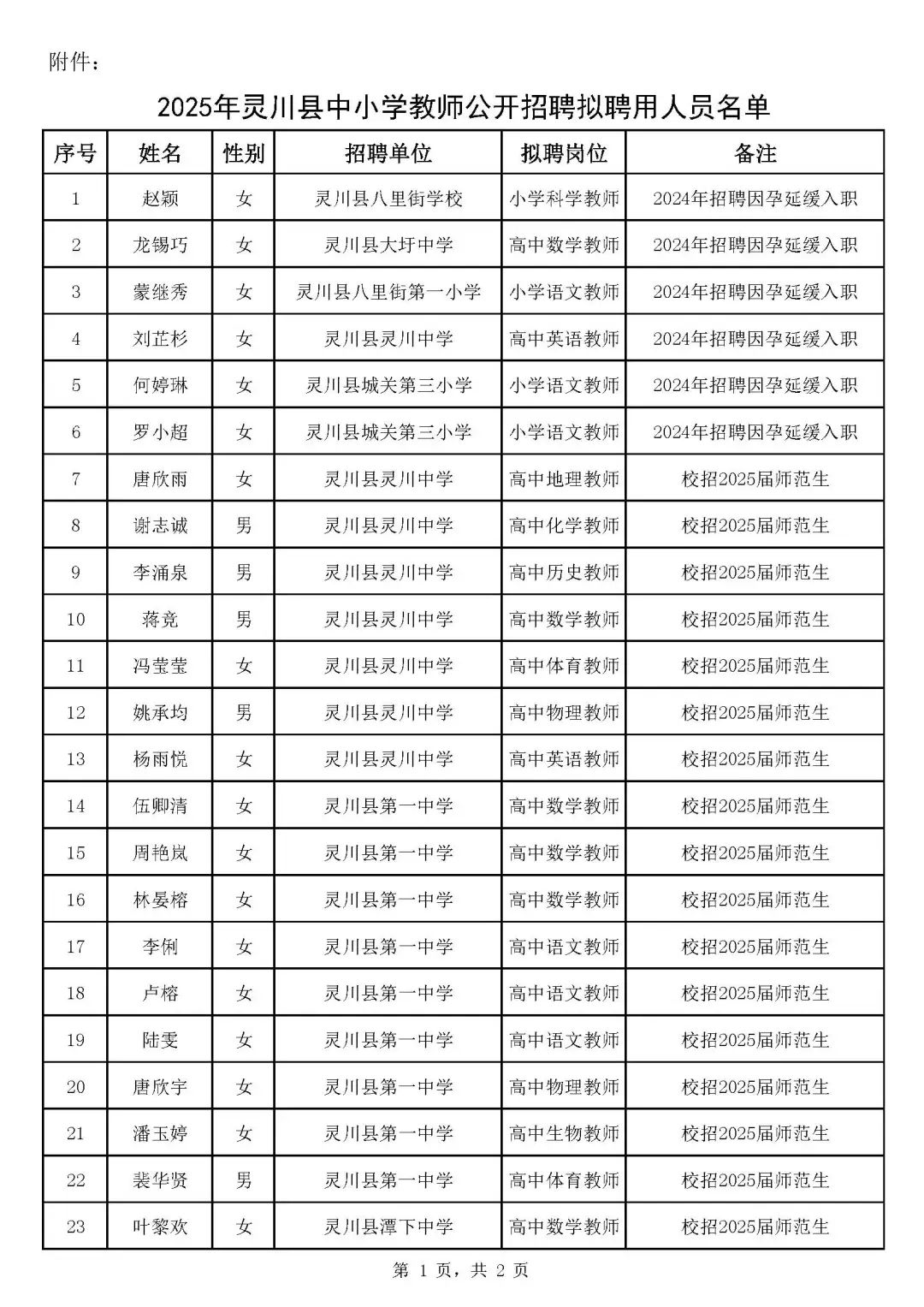 原文標題:2025年靈川縣中小學教師公開招聘擬聘用人員名單公示