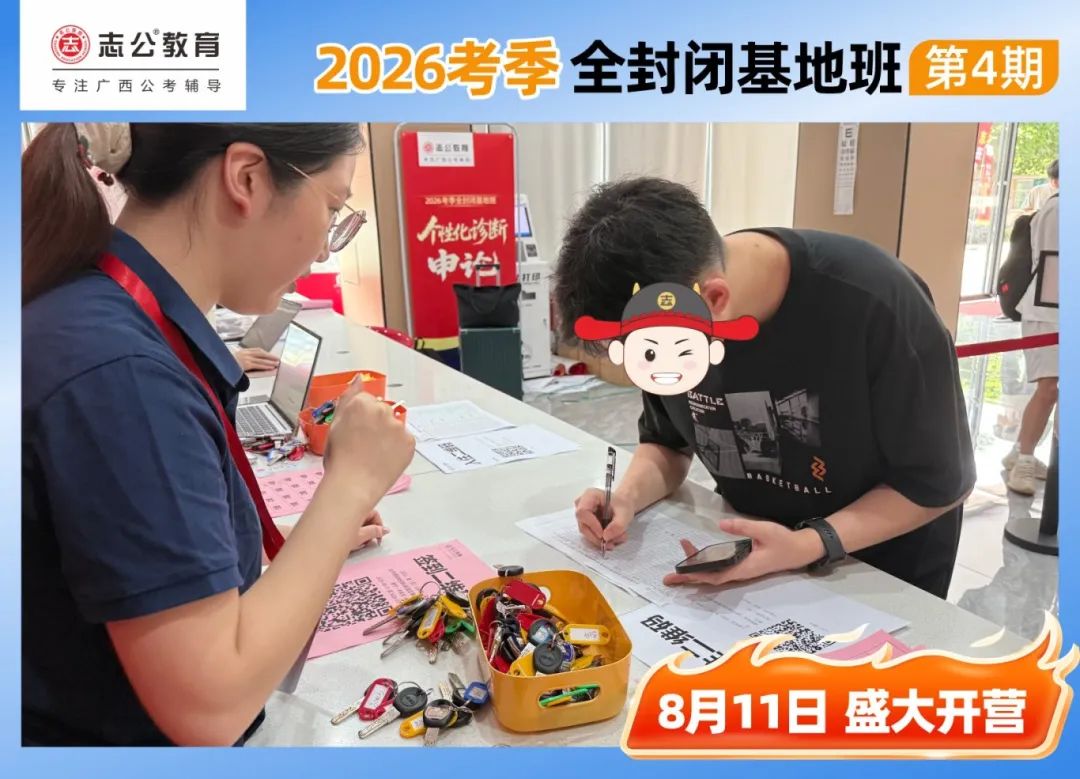 陽(yáng)光明媚的一天,適合學(xué)習(xí),早上10點(diǎn),志公教育(中關(guān)村)全封閉基地的簽到區(qū)已經(jīng)布置妥當(dāng),志公的班主任們?cè)缭绲轿?,迎接每一位學(xué)員的到來(lái)。學(xué)員們滿(mǎn)懷期待,早早來(lái)到基地,為即將到來(lái)的學(xué)習(xí)之旅做好準(zhǔn)備。簽到臺(tái)前,大家有序排隊(duì),學(xué)員們依次領(lǐng)取到宿舍鑰匙、水卡等。班主任們細(xì)心核對(duì)信息,發(fā)放學(xué)員證和學(xué)習(xí)資料,確保每一位學(xué)員都能順利開(kāi)啟接下來(lái)的學(xué)習(xí)生活。