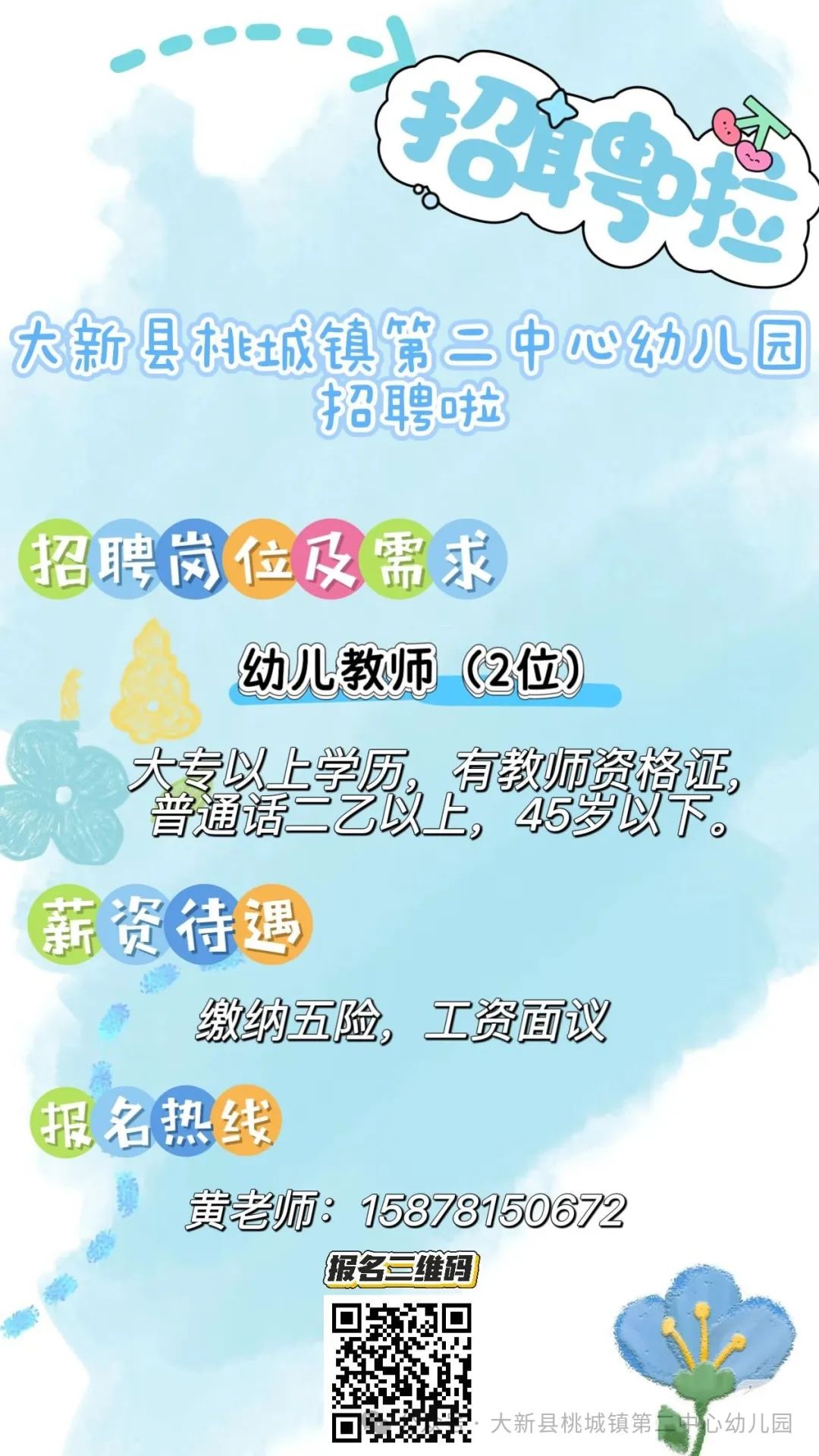 原文標題:大新縣桃城鎮(zhèn)第二中心幼兒園招聘公告