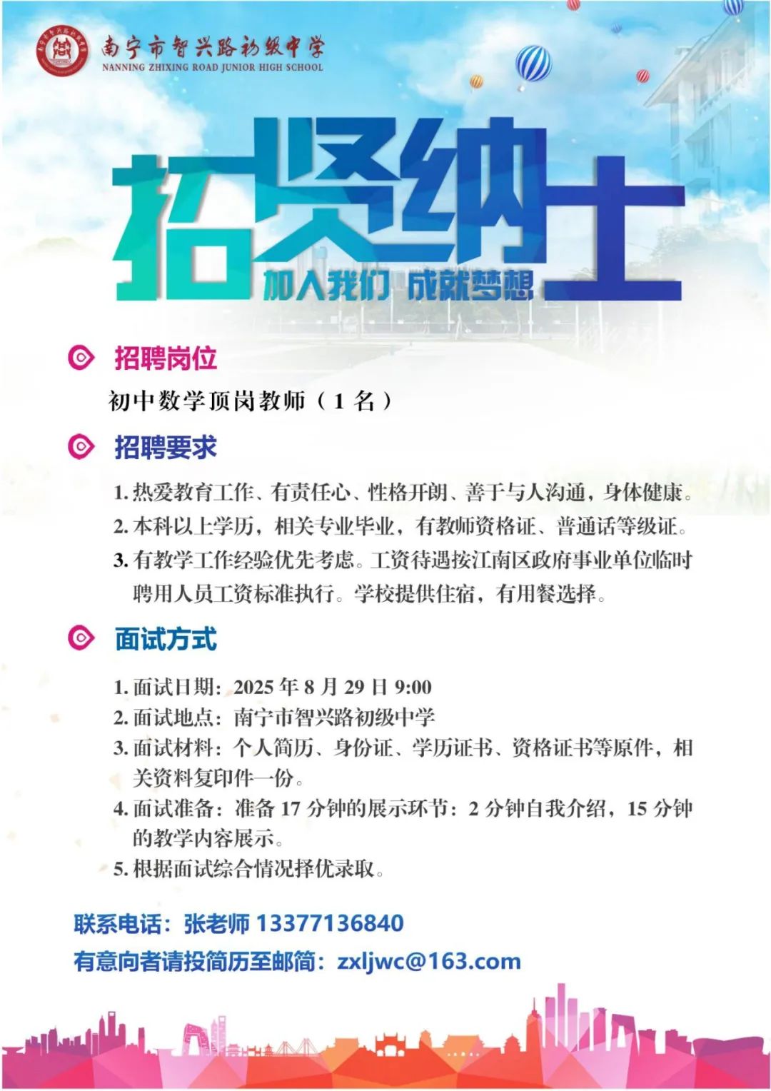 2025年南寧市智興路初級中學(xué)秋季學(xué)期招聘公告