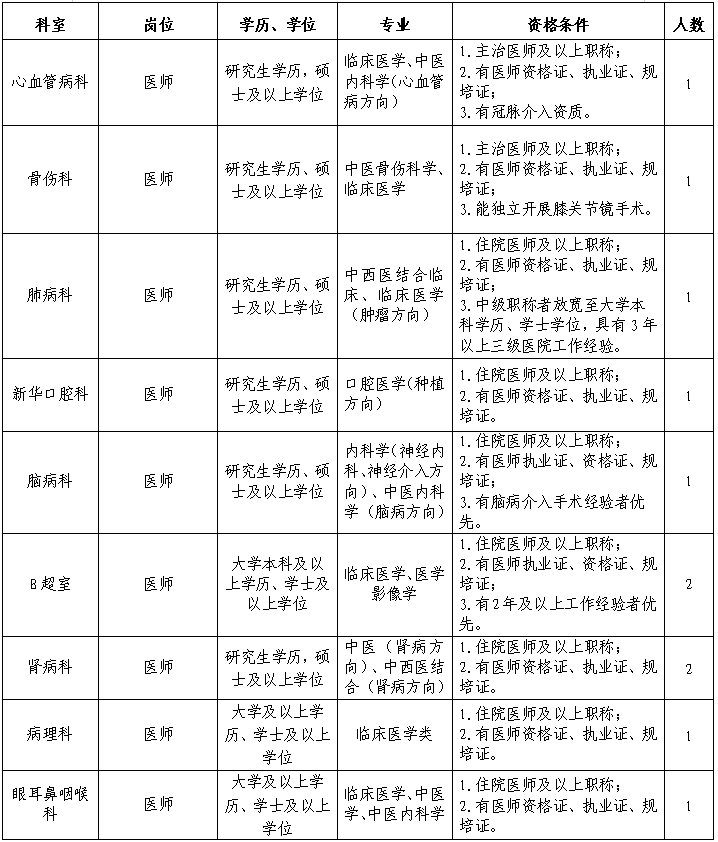 根據(jù)醫(yī)院高質(zhì)量發(fā)展需要,我院誠聘衛(wèi)生醫(yī)療相關專業(yè)領域的人才,歡迎投簡歷應聘。