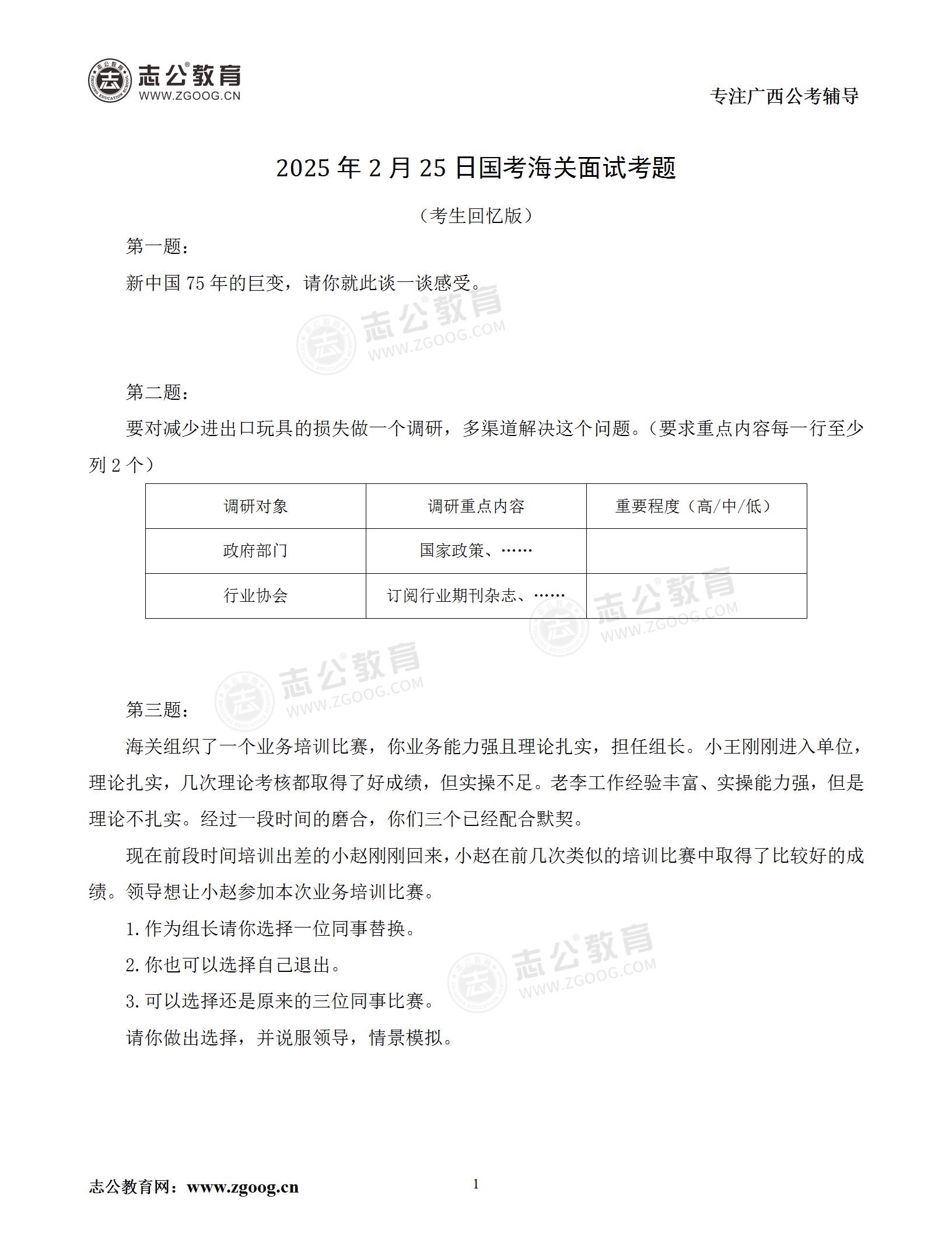 2025年國(guó)考海關(guān)2月25日面試考題(考生回憶版)