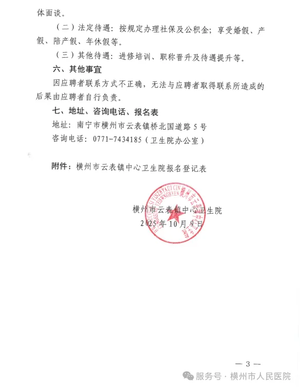 原文標(biāo)題:2025年橫州市云表鎮(zhèn)中心衛(wèi)生院公開招聘編外衛(wèi)生專業(yè)技術(shù)人員的公告