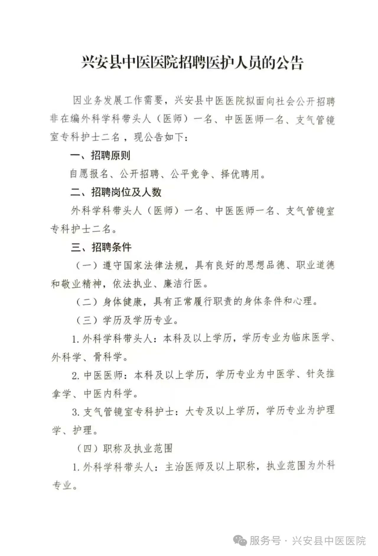 2026年興安縣中醫(yī)醫(yī)院招聘醫(yī)護(hù)人員的公告