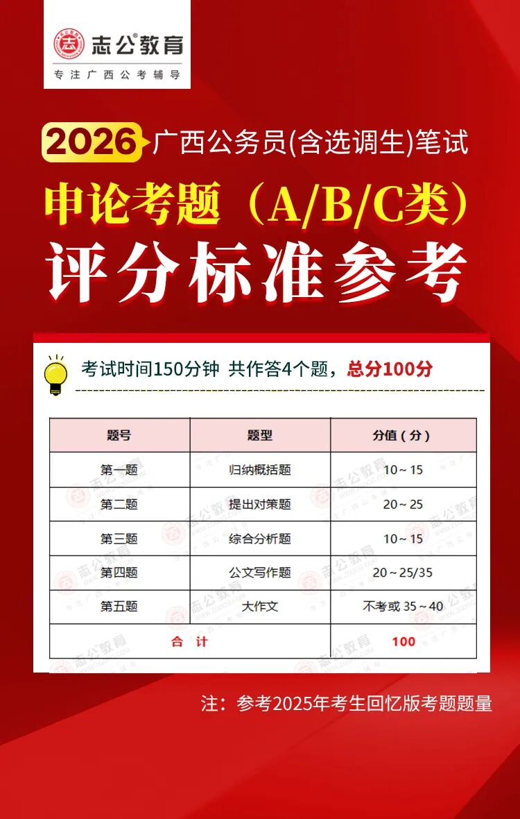 廣西考生須看!2026年廣西區(qū)考、事業(yè)單位聯(lián)考筆試評(píng)分標(biāo)準(zhǔn)!