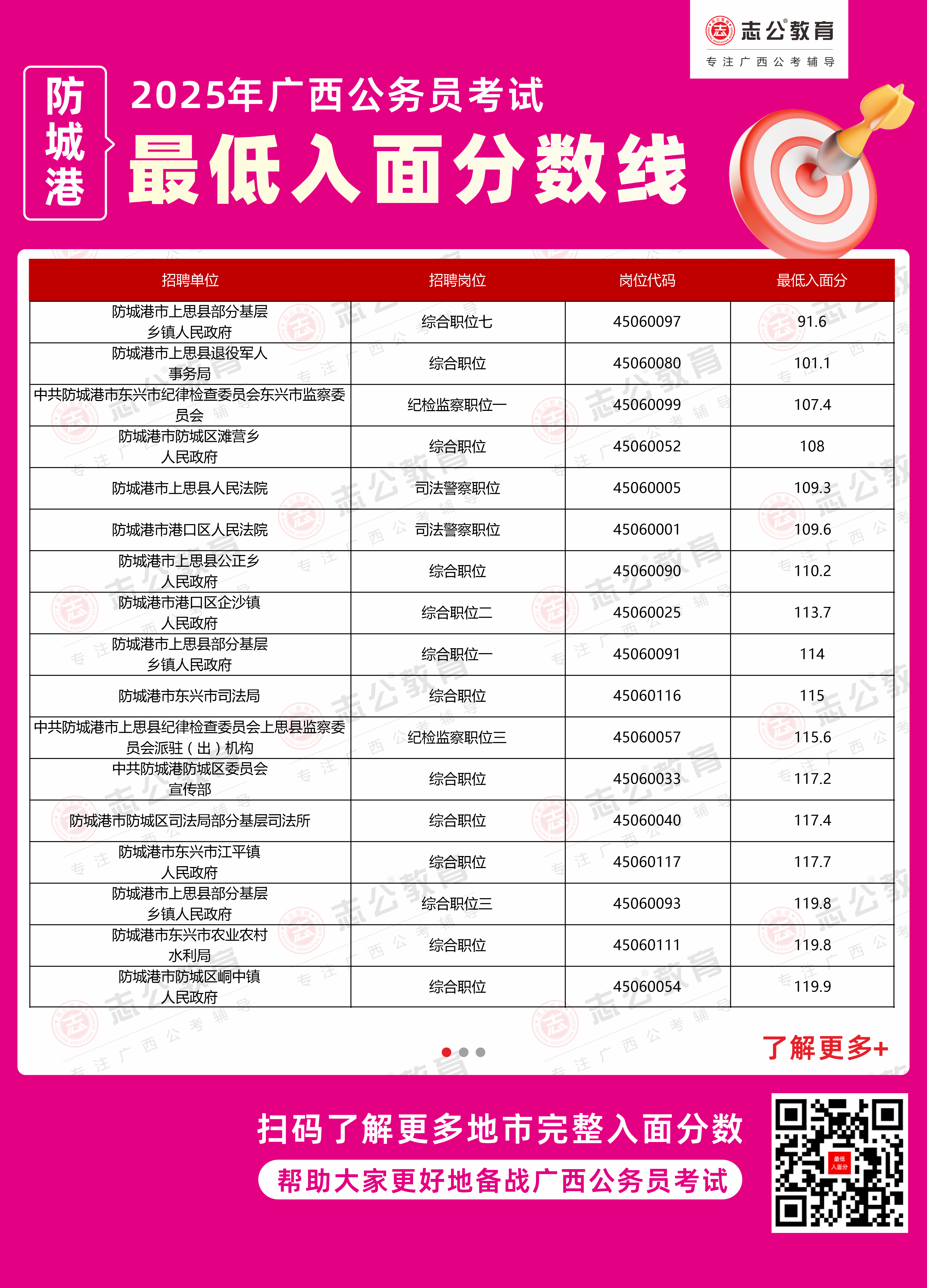 (點(diǎn)擊下載更多2025年防城港公務(wù)員最低入面分?jǐn)?shù),數(shù)據(jù)整理自官方發(fā)布的面試資格審查公告)